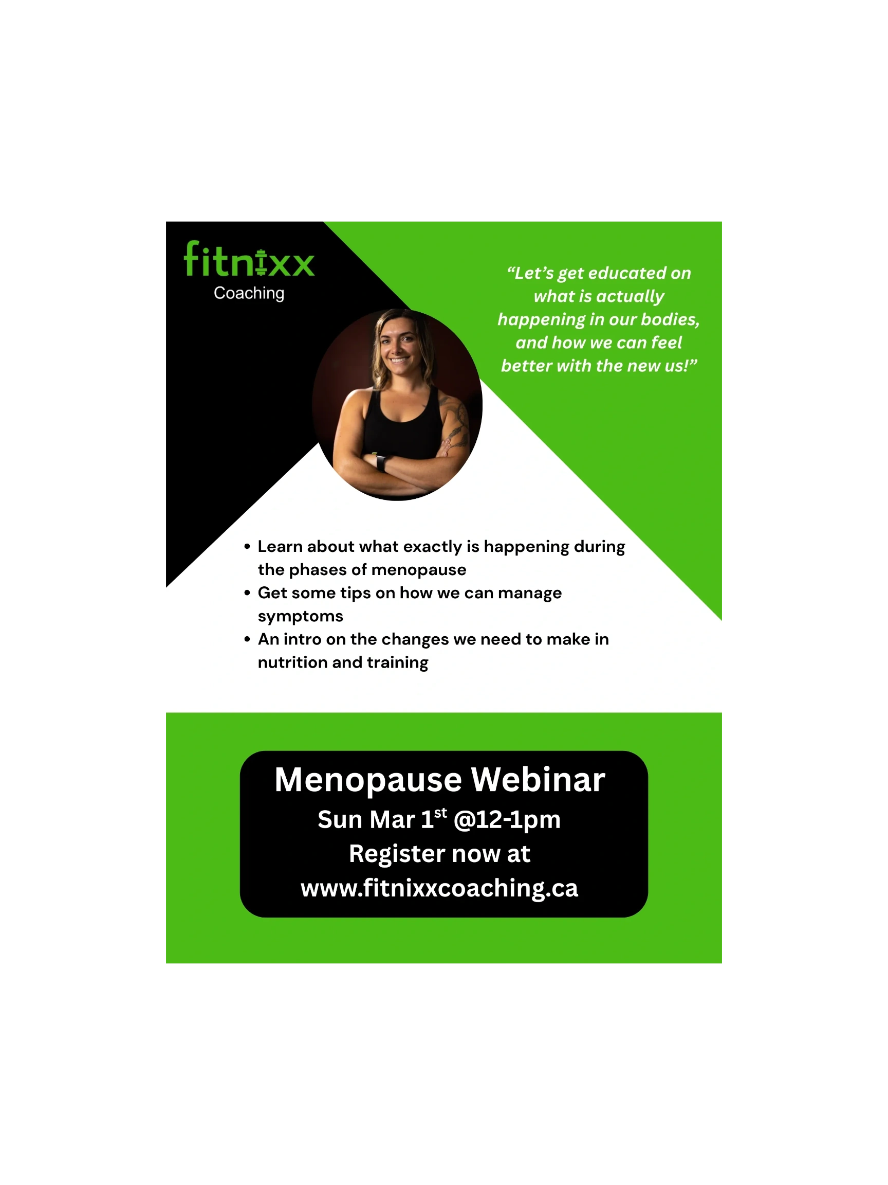 In this webinar we will cover the basics of understanding what is actually happening to better understand why we may be experiencing certain symptoms. We will dive into some possible interventions and touch on how nutrition and training plays a big role and educate how we may need to adapt those to our bodies.
